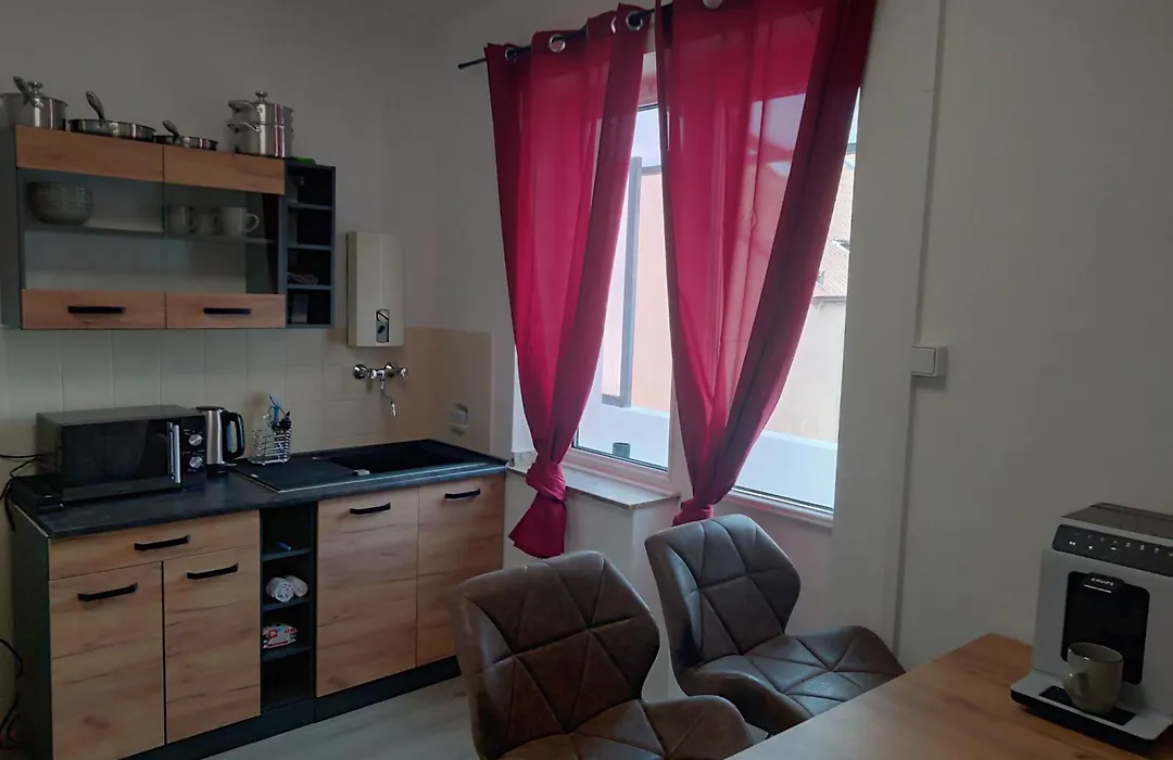 The apartment is equipped with a fridge, a kitchenware, and glassware, ensuring your comfort. Am Steinberg bus stop is just around the corner from the apartment.